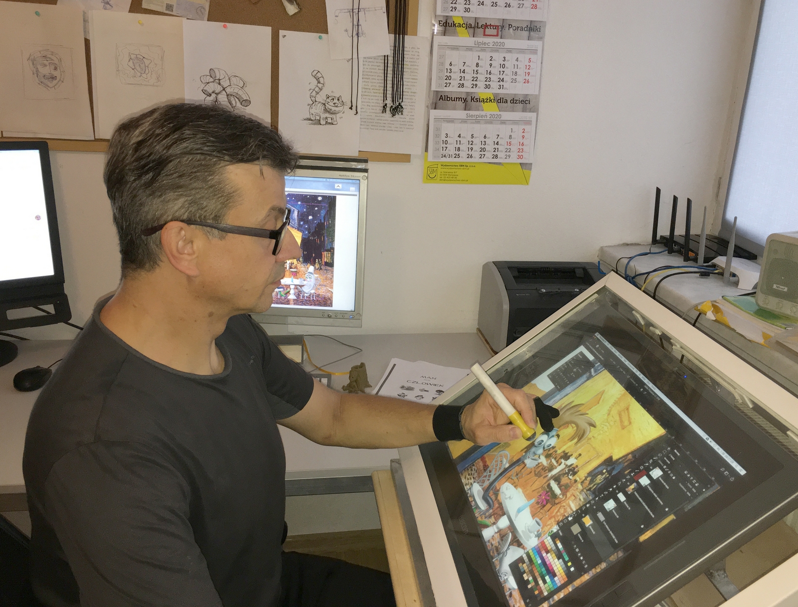 Jestem absolwentem zamojskiego Liceum Plastycznego, które ukończyłem w 1991 roku. Szkoła specjalizowała się wówczas w konserwacji, dlatego swój dyplom zrealizowałem w pracowni konserwacji rzeźby i detali architektonicznych, zdobywając zawód plastyka tej specjalizacji. Zaburzenie neurologiczne nazywane Zespołem Tourette’a, z którym zmagam się od urodzenia uniemożliwiło kontynuację artystycznego kształcenia na wyższej uczelni. Ta dolegliwość potrafi skomplikować życie, często wywołuje przykre reakcje otoczenia, ale los przynosi często rekompensatę. Od najmłodszych lat chciałem rysować i malować, bo kocham sztukę. Nie poddałem się i po ukończeniu szkoły średniej uczyłem się na własną rękę, zbierałem doświadczenia i doskonaliłem mój warsztat. Klientom, z którymi z powodzeniem współpracuję od wielu lat udowodniłem, że mimo braku dyplomu ukończenia wyższych studiów, potrafię z powodzeniem sprostać ich oczekiwaniom. Moją pasją jest ostatnio metaloplastyka i rzeźby w miedzi wykonywane techniką repusowania. Chcę także „zmierzyć się” z innymi metalami - będzie to kolejne ważne doświadczenie. Każdy wolny czas poza tworzeniem ilustracji poświęcam pracy w kuźni – moim warsztacie, w którym mogę bezgranicznie oddać się swej nowej pasji. Serdecznie zapraszam do obejrzenia moich prac w zakładkach „ilustracje” oraz „rzeźba i malarstwo”. Najnowsze prace umieszczam na moim Instagramie. Mam nadzieję, że wszystkie spotkają się z ciepłym przyjęciem.