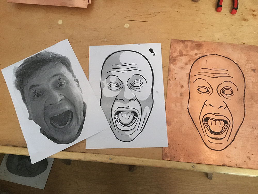 Taki rysunek przenoszę na blachę miedzianą, używając do tego specjalnego rylca.